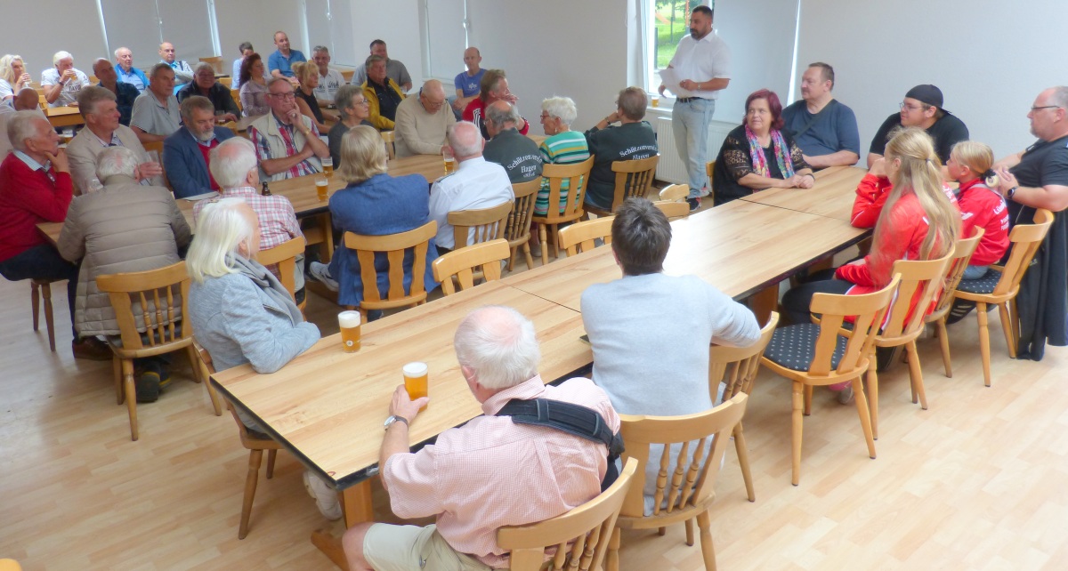 Die Wiedersehensfreude war nicht zu übersehen. Der damalige Vereinsvorsitzende Otto Ernst Schulz (1984 – 1999), sein Vize Joachim „Achim“ Busse (1992 – 1996), Ex-Oberbürgermeister Ulrich Mädge (1991 – 2021) ließen es sich nicht nehmen, an der Geburtstagsfeier anlässlich der Eröffnung des Vereinsheimes vor 30 Jahren in Erinnerungen zu schwelgen (2. August 2025). Günter Dammann, ehemaliger 2. Vorsitzender (1990 – 1992), musste leider aus privaten Gründen absagen, wünschte aber allen Beteiligten eine schöne Feier. Nicht zu vergessen Horst Salewski, der seinerzeit mit seiner Zimmerei für den Innenausbau verantwortlich zeichnete und Heiko Dörbaum als Mitglied des Sportausschusses der Stadt Lüneburg. 42 Mitglieder und Gäste, darunter der 1. Vorsitzende Enis Karahan, die Ehrenvorsitzenden Manfred Schestak und Ralf Pagels, Wolfgang Niewerth (2. Vorsitzender), Geschäftsstellenleiterin Petra Bahlinger (seit 1993), Schrift- (seit 1994) und Pressewart Jens Burmester (seit 1990), die Beisitzer im Vereinsvorstand Torsten Bahlinger, Jens Dömeland und Frank Paketuris, Schwimmabteilungsleiterin Britta Paketuris, ihre 2. stellv. Spartenleiterin Sabrina Schmidt und Trainerassistent Marcel Paketuris, Fritz Juschkus vom Organisations-Team der Senioren-Freizeit-Abteilung und 1995 Fußball-Kreisvorsitzender Lüneburg (1991 – 2007), Fußballlegende Thomas Burghardt sowie eine Abordnung des Schützenvereins Hagen (Nachbarverein der LSV) mit Präsident Thomas Meyn, zeigten sich respektvoll gegenüber den Initiatoren des Sportpark-Neubaus mit dem Planungsbeginn von vor 34 Jahren. Otto Ernst Schulz (81) und sein Bauleiter Joachim Busse (76), seit 15 Jahren Vereinssportleiter der Schützen, waren hellauf begeistert vom runden Ehrentag und fühlten sich pudelwohl.
