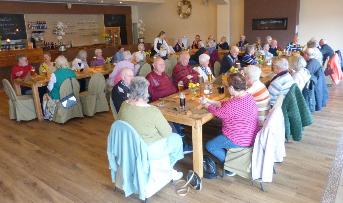 Nach all den beeindruckenden Bildern knurrte bei allen der Magen. Das Restaurant Ihlsee mit herrlichem Blick auf den 29 Hektar großen und etwa 21 Meter tiefen Gewässer, der zu den nährstoffarmen Seen in Schleswig-Holstein zählt. An den liebevoll gedeckten Tischen gab es ein sog. Bratkartoffelbuffet u. a. mit leckeren Kartoffelgratin, Schnitzel, Gemüse, Spargel, Kräuterbraten, Kasseler, Bratensauce, Lachs, alkohol- und alkoholfreie Getränke und als Nachspeise Eis. Die Mitarbeiter des Gastronomiebetriebes überraschten das Geburtstagskind Gisela Münzberg mit einer Eisbombe. Sie war total gerührt und fasziniert. Dann das Highlight des Nachmittags: Die Oldies wurden regelrecht „verzaubert“. Der Leiter der Sparkasse Südholstein in Bad Segeberg Kai Graeper hatte seinen Auftritt oder wie er kurz und prägnant sagte: „It´s Showtime“. Der 62-jährige gebürtige Bad Segeberger, dem schon als Kind der Zauberkasten in seinen Bann zog, brachte die Oldies unter dem Motto „Zauberei zum Mitmachen – Zauberei zum Mitlachen“ etwa 45 Minuten zum Staunen. Dabei lud er einige Senioren:innen auf die Showbühne, die bravourös mitzogen. Applaus en masse. Am Anfang hieß es: Sie brauchen ein Tuch und das ist rot. Und plötzlich verwandelte sich das rote in ein weißes Tuch. Wow. Nicht zu vergessen: Stopfen, stopfen, stopfen. Die Magie war atemberaubend. Kurz vor der Rückfahrt stärkten sich die Touris aus dem Integrationsverein Lüneburger SV mit frischem Kaffee und verschiedenen Kuchensorten. In seiner Schlußmoderation für diesen Tag machte Anchorman Fritz Juschkus auf die nächste Veranstaltung am Mittwoch, 13. Mai, um 15.00 Uhr im Versammlungsraum des Vereinsheimes aufmerksam: Der legendäre, gesprächsreiche, freudige und allseits beliebte Kaffeeklatsch. Bis dahin: Alles Gute !